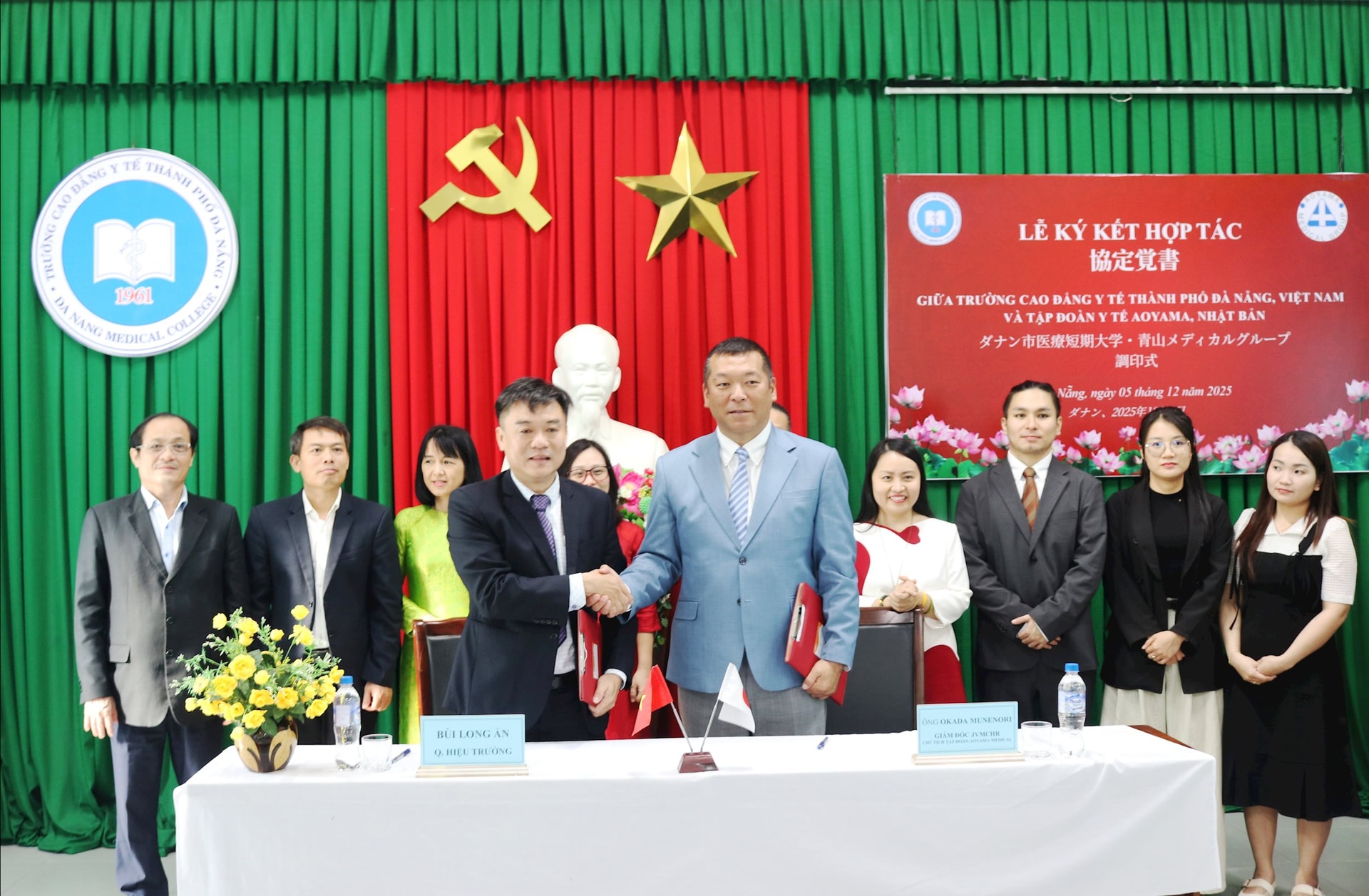 Chiều 5/12, Trường Cao đẳng Y tế thành phố Đà Nẵng tổ chức lễ ký kết hợp tác với Tập đoàn Y tế Aoyama (Nhật Bản) trong lĩnh vực đào tạo tiếng Nhật, kiến thức chăm sóc sức khỏe Kaigo và phát triển nguồn nhân lực chất lượng cao.