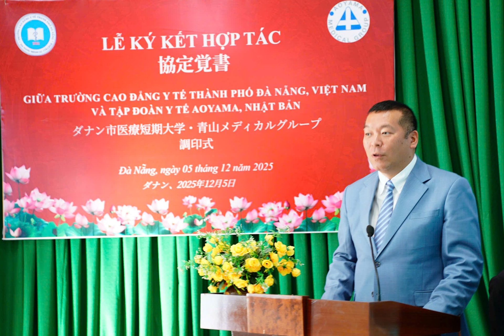 “Việc ký kết thỏa thuận hợp tác giữa Trường Cao đẳng Y tế thành phố Đà Nẵng và Tập đoàn Y tế Aoyama (Nhật Bản) thể hiện mong muốn của hai bên trong việc xây dựng mối quan hệ bền vững. Đặc biệt, sự hợp tác này tập trung vào các lĩnh vực giáo dục, đào tạo và phát triển nguồn nhân lực chất lượng, nhằm phục vụ nhu cầu tuyển dụng đa dạng của các doanh nghiệp tại Nhật Bản và Việt Nam. Đồng thời, đây cũng là cơ hội để mở rộng hợp tác sang những lĩnh vực phù hợp khác, dựa trên nhu cầu thực tế của hai đơn vị”, ông Bùi Long Ẩn phát biểu.