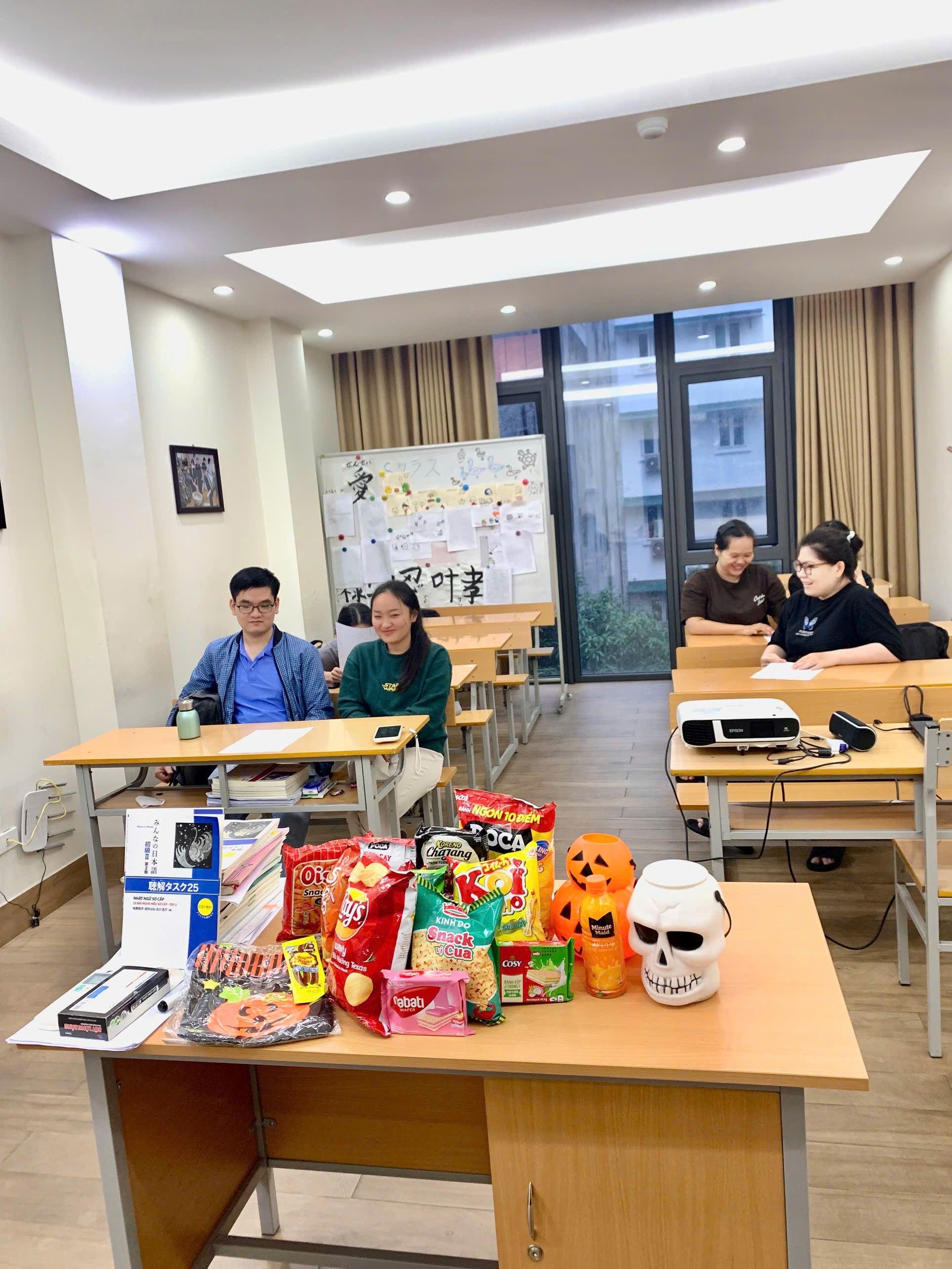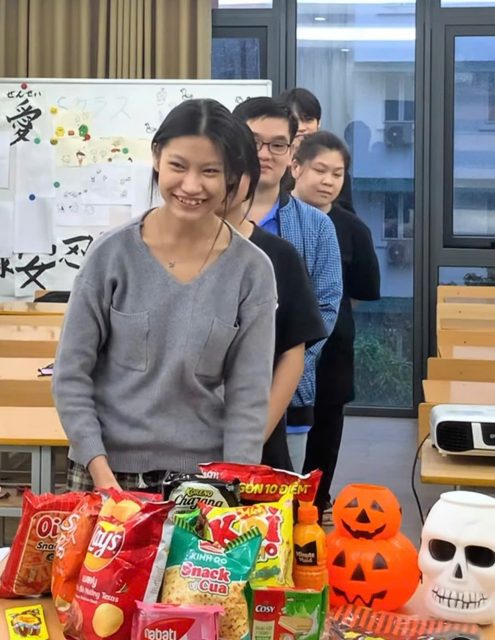 Thay vì những bộ trang phục hóa trang hay bữa tiệc hoành tráng, Halloween năm nay tại Trung tâm được tổ chức theo cách đơn giản nhưng vô cùng ý nghĩa. Các học viên được tham gia các trò chơi tương tác bằng tiếng Nhật, cùng nhau ôn luyện và mở rộng vốn từ vựng liên quan đến Halloween như:🕷️ おばけ (ma), 🎃 かぼちゃ (bí ngô), 🧙♀️ まじょ (phù thủy), 🧛♂️ ドラキュラ (ma cà rồng)…
